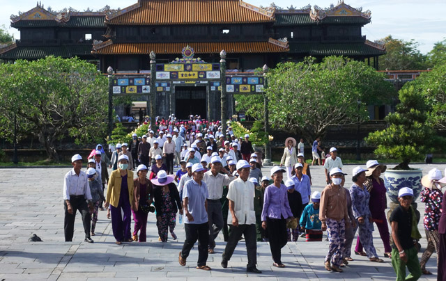 Ngoài khách ngoại tỉnh, khách tham quan Đại Nội phần đông là người dân ở các huyện, thị xã trên địa bàn tỉnh. Vượt 70km từ thị trấn Lăng Cô lên TP. Huế, vợ chồng chị Hà Liễu Phương hứng khởi, nghỉ lễ ai cũng đi chơi, vợ chồng tôi chọn Đại Nội vì lâu lắm rồi chưa có dịp thăm lại. Mỗi lần vào Đại Nội là mỗi khác, nhiều công trình được trùng tu hơn. Hy vọng sẽ nhiều công trình nữa được phực dựng để phục vụ du khách tốt hơn”.