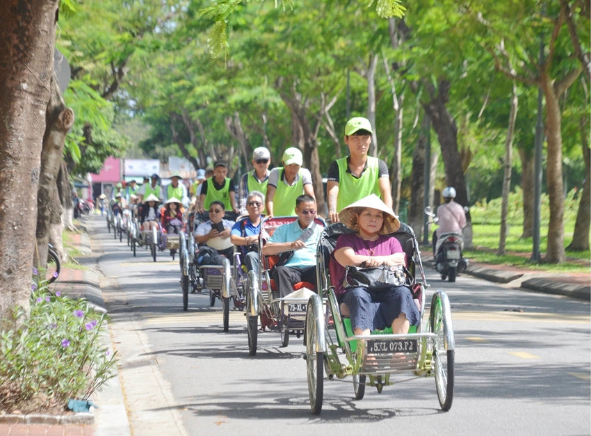 | Khách du lịch trải nghiệm Huế bằng xích lô |