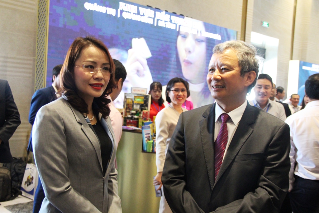UVTW Đảng, Bí thư Tỉnh ủy, Chủ tịch HĐND tỉnh Lê Trường Lưu (phải) trao đổi với các doanh nghiệp bên lề hội nghị