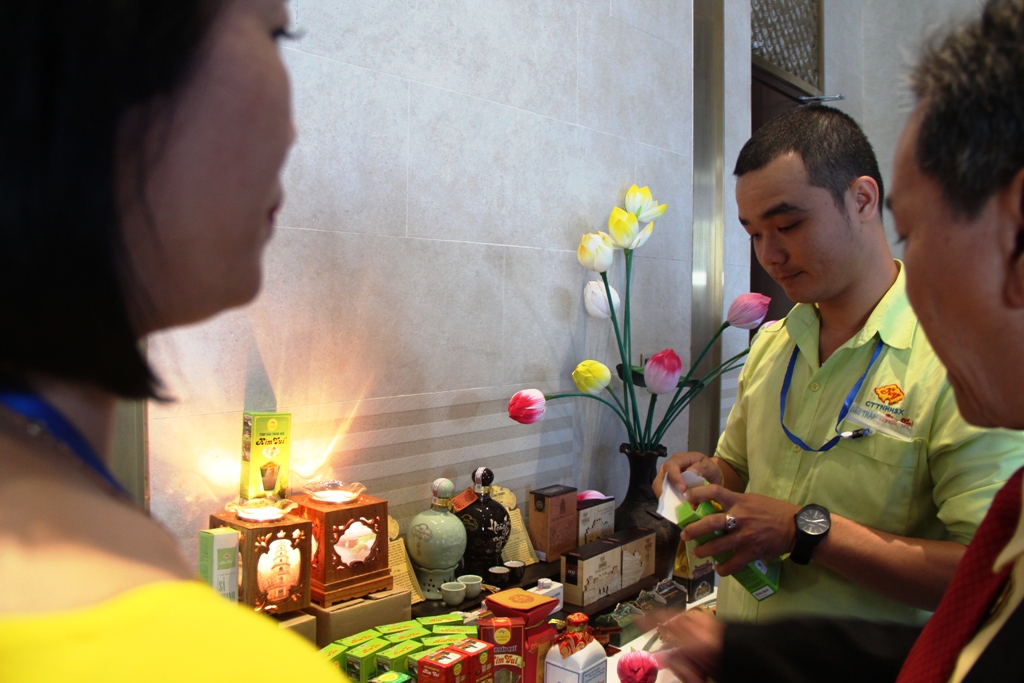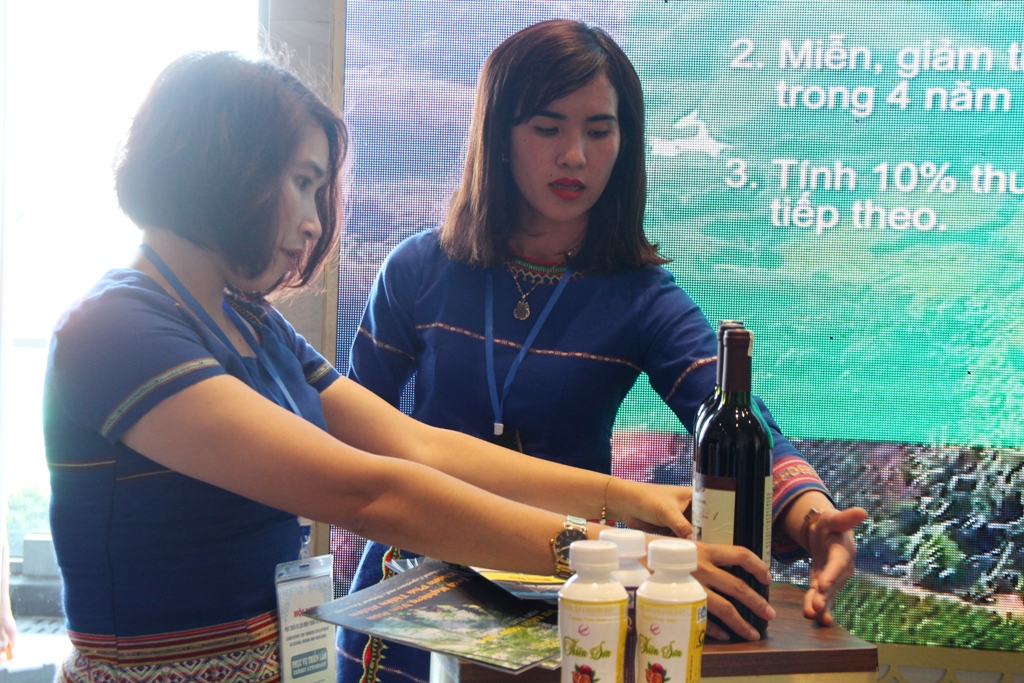 Không gian trưng bày sản phẩm rượu vang sinh đến từ tỉnh Kon Tum