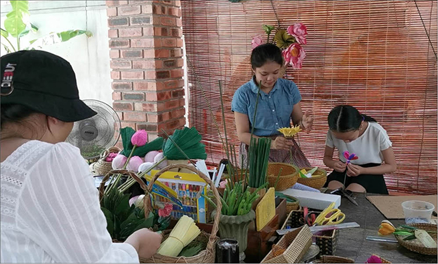 Du khách trải nghiệm làm hoa giấy tại Lavin home