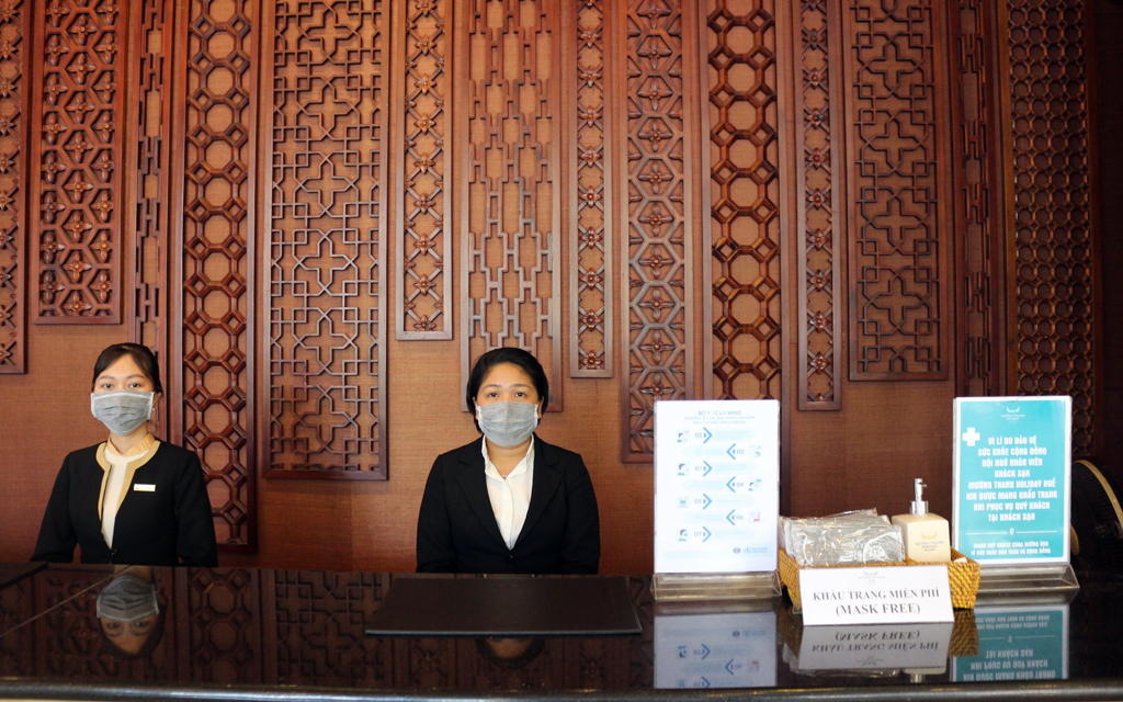 Lễ tân khách sạn được khuyến khích đeo khẩu trang khi làm việc