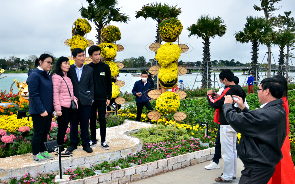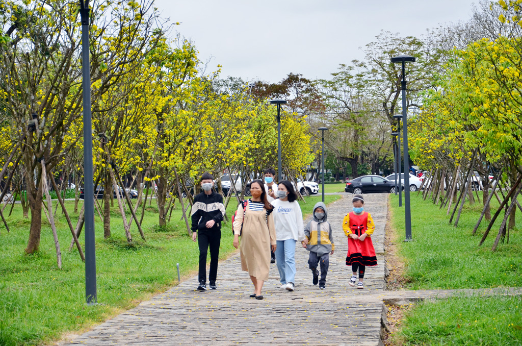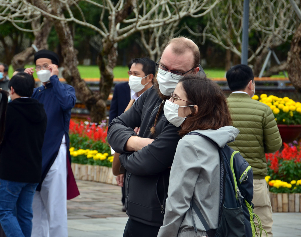 Người dân và du khách khi du xuân hầu hết đã mang khẩu trang, giữ khoảng cách.
