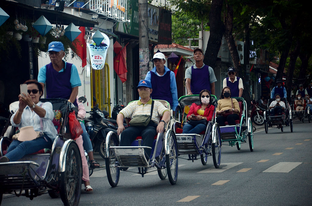 Đoàn khách Thái Lan chọn xích lô để tham quan Huế