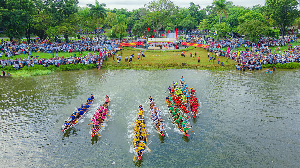 Giải đua ghe truyền thống trên sông Hương thu hút hàng ngàn khán giả đến cổ vũ
