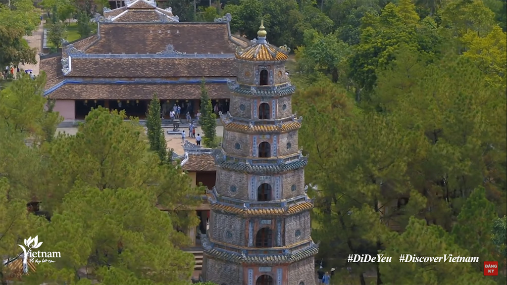 Chùa Thiên Mụ, điểm đến được quảng bá trong clip. (Ảnh chụp từ clip)