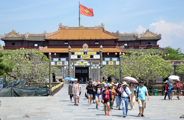 Khách du lịch đến Huế 6 tháng đầu năm tăng mạnh (Ảnh: Khách tham quan Đại Nội)