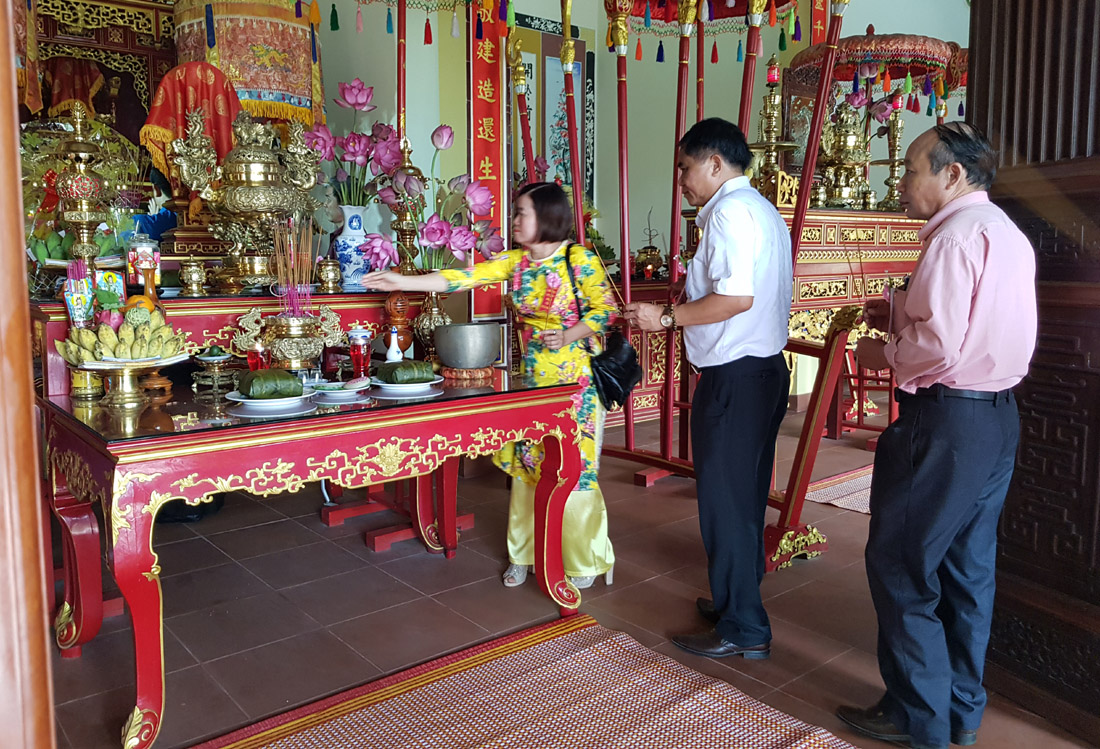 Du khách dâng hương tưởng nhớ vua Hùng tại đền thờ nằm trong khuôn viên làng du lịch