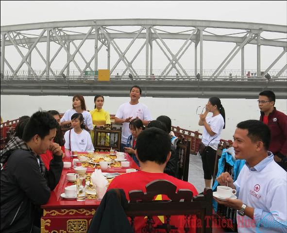 Với con thuyền này, khách có nhiều lựa chọn. Buổi sáng, khách có thể tập yoga trên boong thuyền. Trưa, vừa thưởng thức ẩm thực Huế, vừa ngắm cảnh hai bên dòng Hương trên đường đến lăng Minh Mạng tham quan. Chiều, ngắm cảnh, uống cooktail trong tiếng nhạc du dương của violon, guitare, saxophone. Buổi tối, thuyền phục vụ ăn tối theo thể thức cung đình; xem biểu diễn ca Huế...