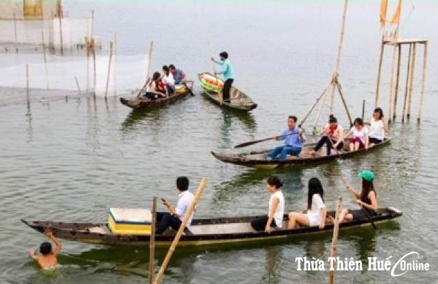Du khách trải nghiệm tour “Chiều trên phá Tam Giang” của Công ty du lịch Huetourist