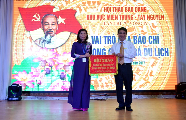 Trao cờ hội thảo báo Đảng miền Trung – Tây Nguyên lần thứ 8 cho báo Thanh Hóa