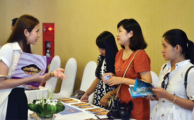 Doanh nghiệp Huế (bên phải) trao đổi với các đối tác trong một chuyến kích cầu du lịch