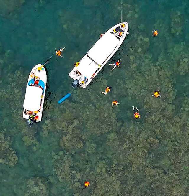 Sau đôi lần lỡ hẹn, tôi mới có dịp trải nghiệm tour khám phá đảo Sơn Chà, từ lời mời của ông chủ trẻ Lăng Cô Biển Xanh. Trước khi bắt đầu hành trình, anh bạn hướng dẫn viên thông tin sơ lược về đảo Sơn Chà. Nếu đứng từ mũi Cửa Khẻm (đèo Hải Vân) nhìn sang, Sơn Chà trông như hình một chiếc chảo úp ngược, trên đảo cây xanh um tùm, nước biển xung quanh xanh ngắt, pha lẫn chút màu ngọc bích.