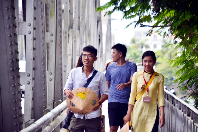Dừng chân nghe thuyết minh về di tích Tòa Khâm sứ Trung Kỳ