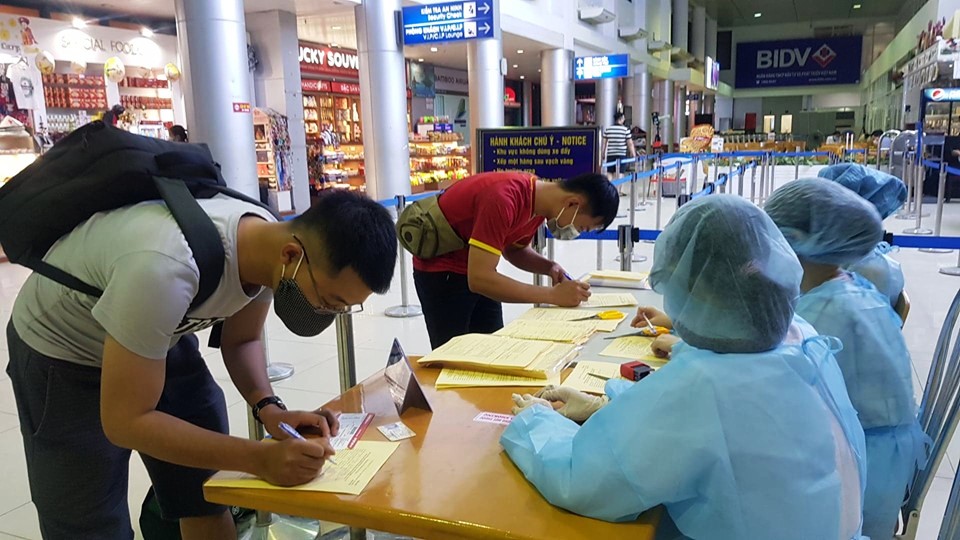 Người dân, du khách khai báo y tế ở Sân bay quốc tế Phú Bài