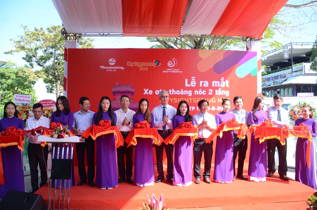 Cắt băng ra mắt dịch vụ tham quan Huế bằng xe buýt hai tầng thoáng nóc