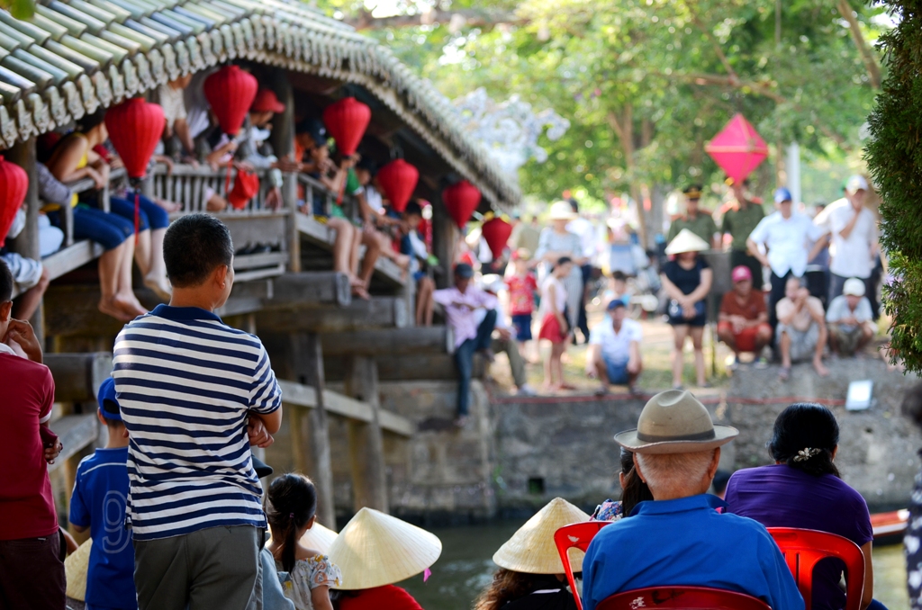 Cầu ngói và khu vực xung quanh chật kín người xem