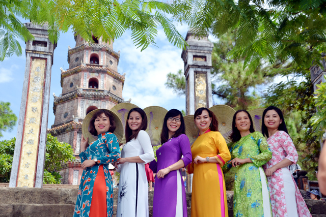Nhóm du khách Hà Nội "diện" áo dài tham quan Huế