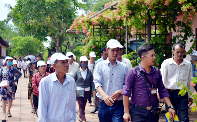Chùa Thiên Mụ trong những ngày thường đã thu hút du khách, hôm nay càng thu hút thêm khách. Khách đến tham quan, viếng chùa chủ yếu là khách du lịch. Nổi bật nhất trong sáng 2/9 là đoàn khách đến từ Hà Nội. Một vị khách thông tin, vào Huế họ tranh thủ đi may áo dài và sáng sớm đã mặc áo dài để đến chùa tham quan. Đoàn khách không quên ghi lại những hình ảnh làm kỷ niệm tại ngôi chùa nổi tiếng nhất của Cố đô.