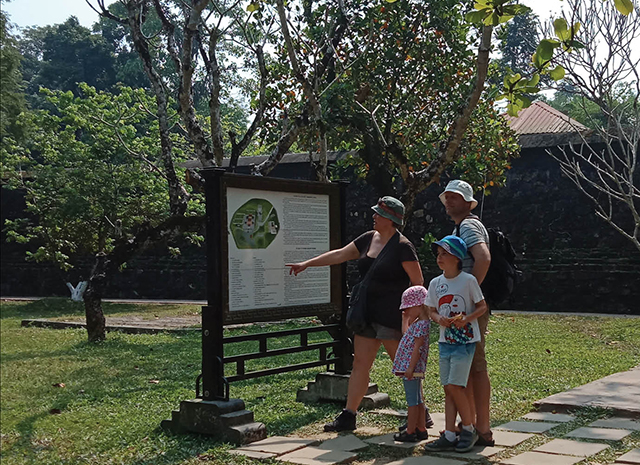 Du khách tìm hiểu thông tin về lăng Tự Đức. Ảnh: K.O