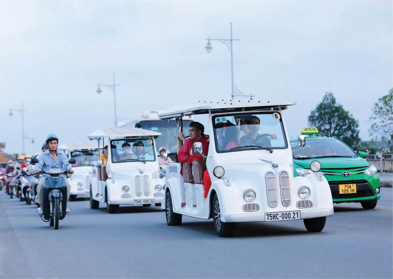 Du khách đến Huế và trải nghiệm tham quan bằng xe điện