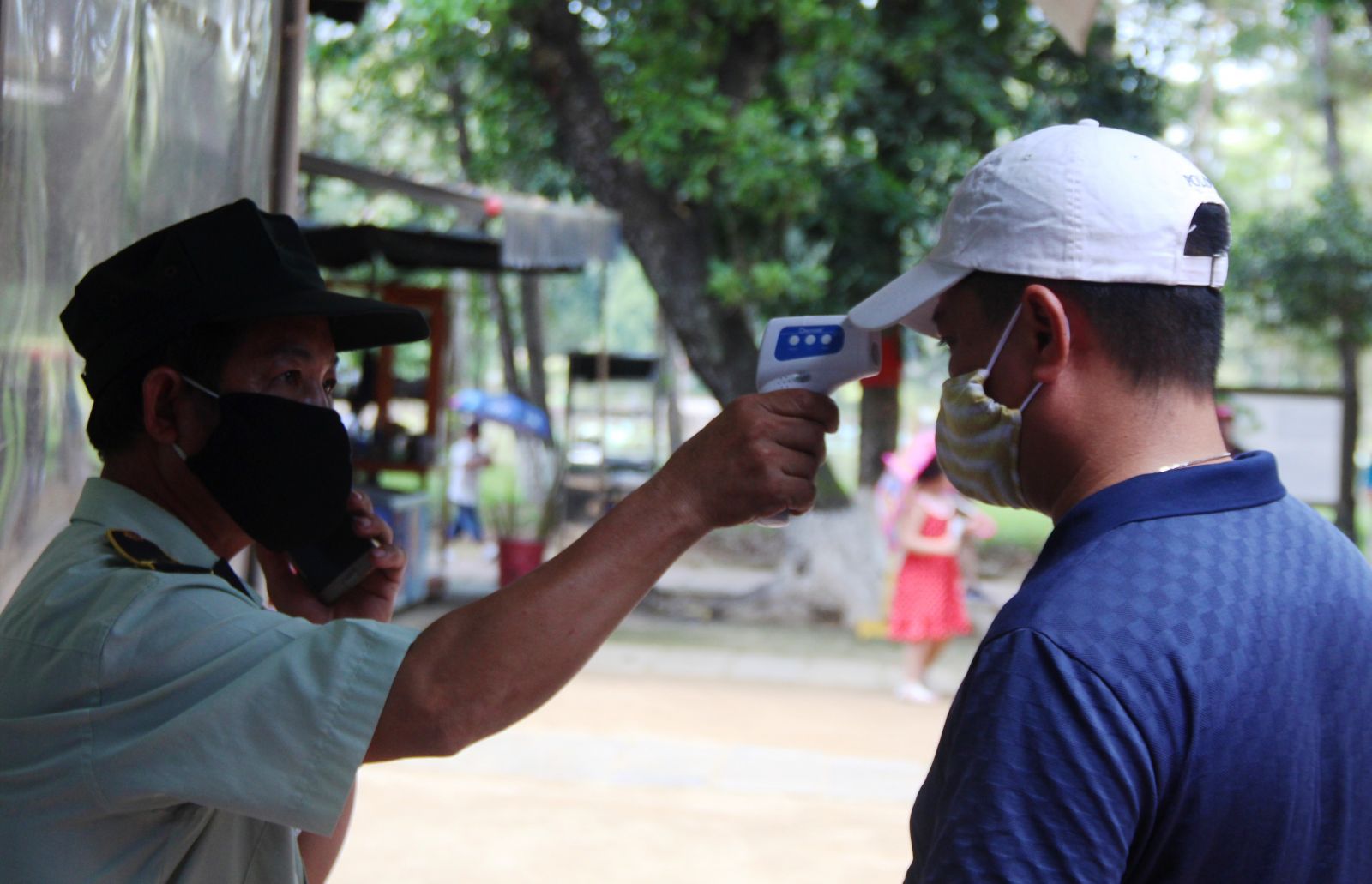 Kiểm tra thân nhiệt du khách khi vào cổng tham quan di sản Huế trong thời gian dịch bệnh COVID-19