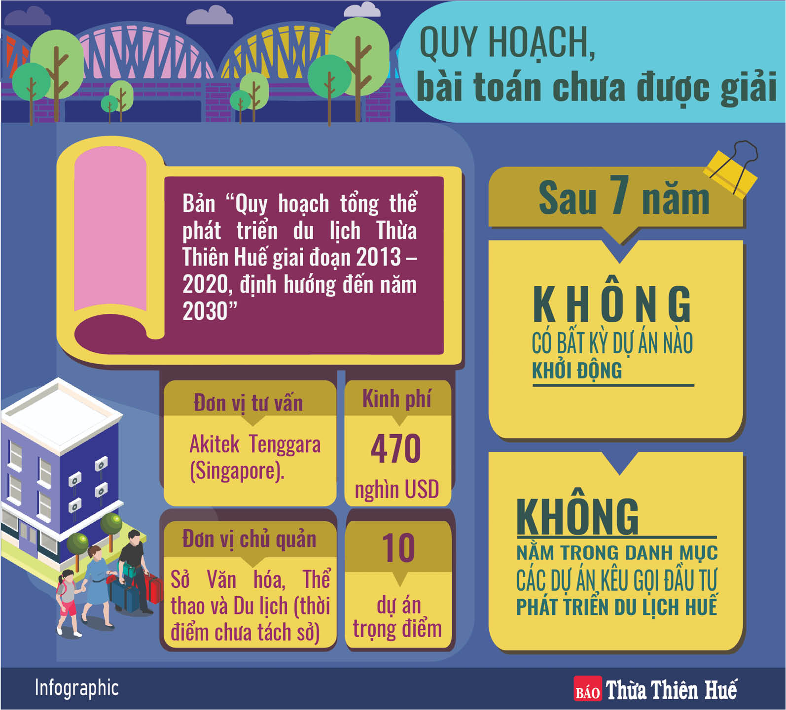 7 năm trôi qua, tất cả 10 dự án trọng điểm mà Akitek Tenggara đề xuất cho Huế, không có bất kỳ dự án nào khởi động. Điều khó hiểu không dừng ở đó, khi quy hoạch không được ngành du lịch đề cập đến suốt nhiều năm qua. Ngay trong Nghị quyết 03 của Tỉnh ủy năm 2016 cũng không có nội dung nào đề cập đến quy hoạch, dù quy hoạch ra đời trước đó chỉ 3 năm. Ông Phan Trọng Minh, Giám đốc điều hành Khách sạn Azerai La Residence thông tin, từ năm 2015 về trước, tại các cuộc làm việc với tỉnh và ngành các định hướng, góp ý chuyên môn đều dựa trên quy hoạch. Nhưng đã rất lâu, trong các cuộc làm việc, hay sự kiện lớn đều không hề đề cập nữa. “Có lẽ, quy hoạch này đã không còn áp dụng”, ông Minh hoài nghi.