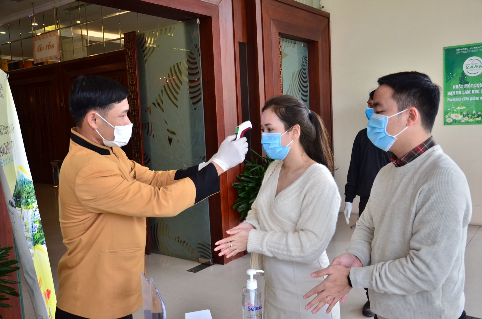 Tại các khách sạn, tất cả đã chuyển sang trạng thái “nóng”, áp dụng đầy đủ các biện pháp phòng chống dịch bệnh như đã từng được áp dụng trong giai đoạn cao điểm của dịch bệnh trong năm 2020. Theo đó, tất cả du khách đều được yêu cầu khai báo y tế; thực hiện đo thân nhiệt, kiểm tra sức khỏe trước khi nhận phòng và người bên ngoài vào khách sạn có công việc; phát khẩu trang cho du khách và trang bị nước rửa tay sát khuẩn khi du khách vào lưu trú….
