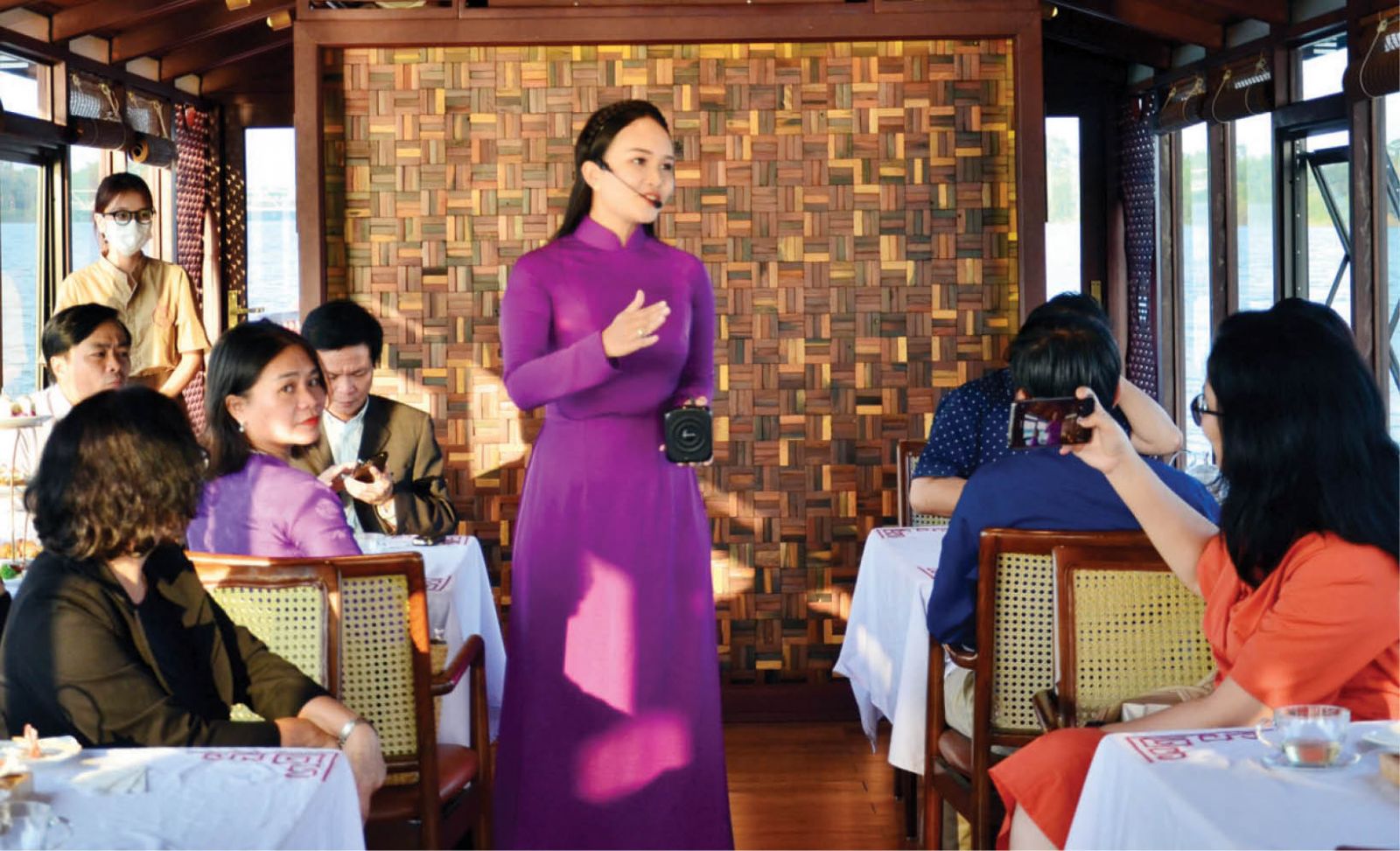 Nữ hướng dẫn viên Cẩm Hiền luôn lựa chọn áo dài khi hướng dẫn khách