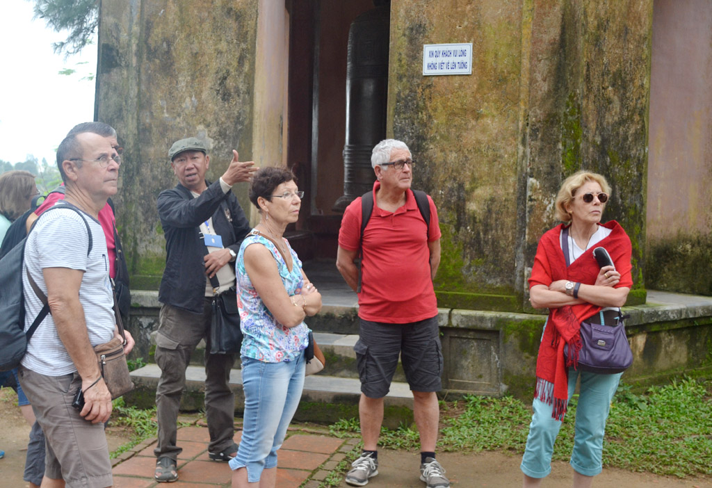 Các điểm di tích hiện nay vẫn chưa triển khai hạn chế hoặc cấm hút thuốc lá (Du khách tham quan chùa Thiên Mụ)