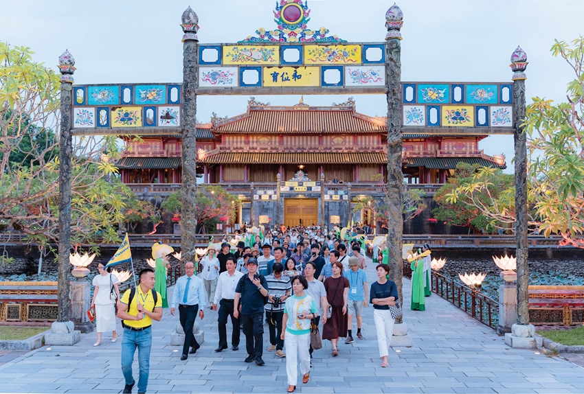 | Khách du lịch tham quan Đại Nội Huế. Ảnh: HOÀNG LÊ |