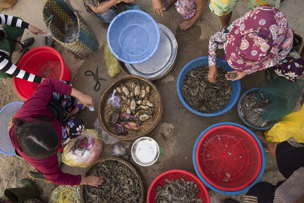 Các loại thủy hải sản được bày bán ngay tại chỗ sau đánh bắt