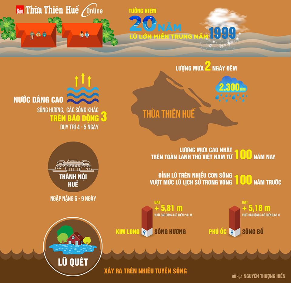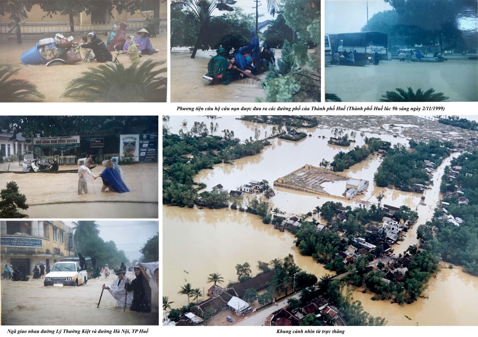 Mưa lớn ròng rã trong 7 ngày (từ 1-7/11/1999) nhấn chìm 90% khu dân cư vùng gò đồi. Trên sông Hương và sông Bồ-hai con sông lớn của Huế-mực nước có khi dâng cao 8-9m.