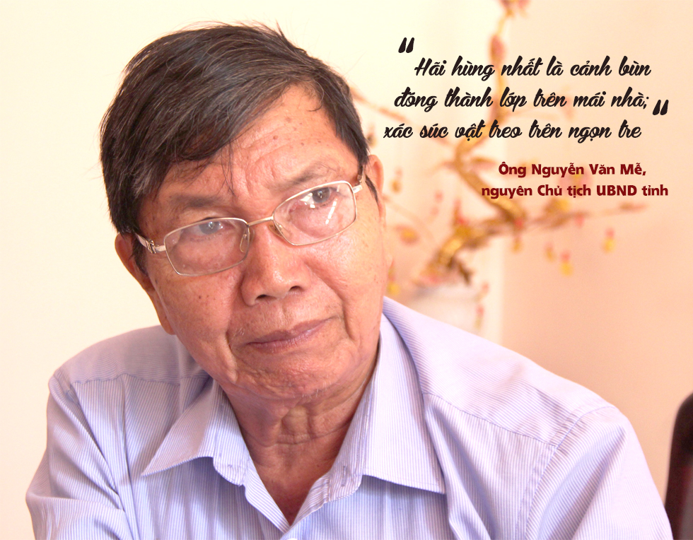 Ông Nguyễn Văn Mễ, nguyên Chủ tịch UBND tỉnh Thừa Thiên Huế mở đầu câu chuyện với chúng tôi như thế. “Hãi hùng nhất là cảnh bùn đóng thành lớp trên mái nhà; xác súc vật treo trên ngọn tre”, ông Mễ nói về nỗi ám ảnh sau trận lụt 1999.