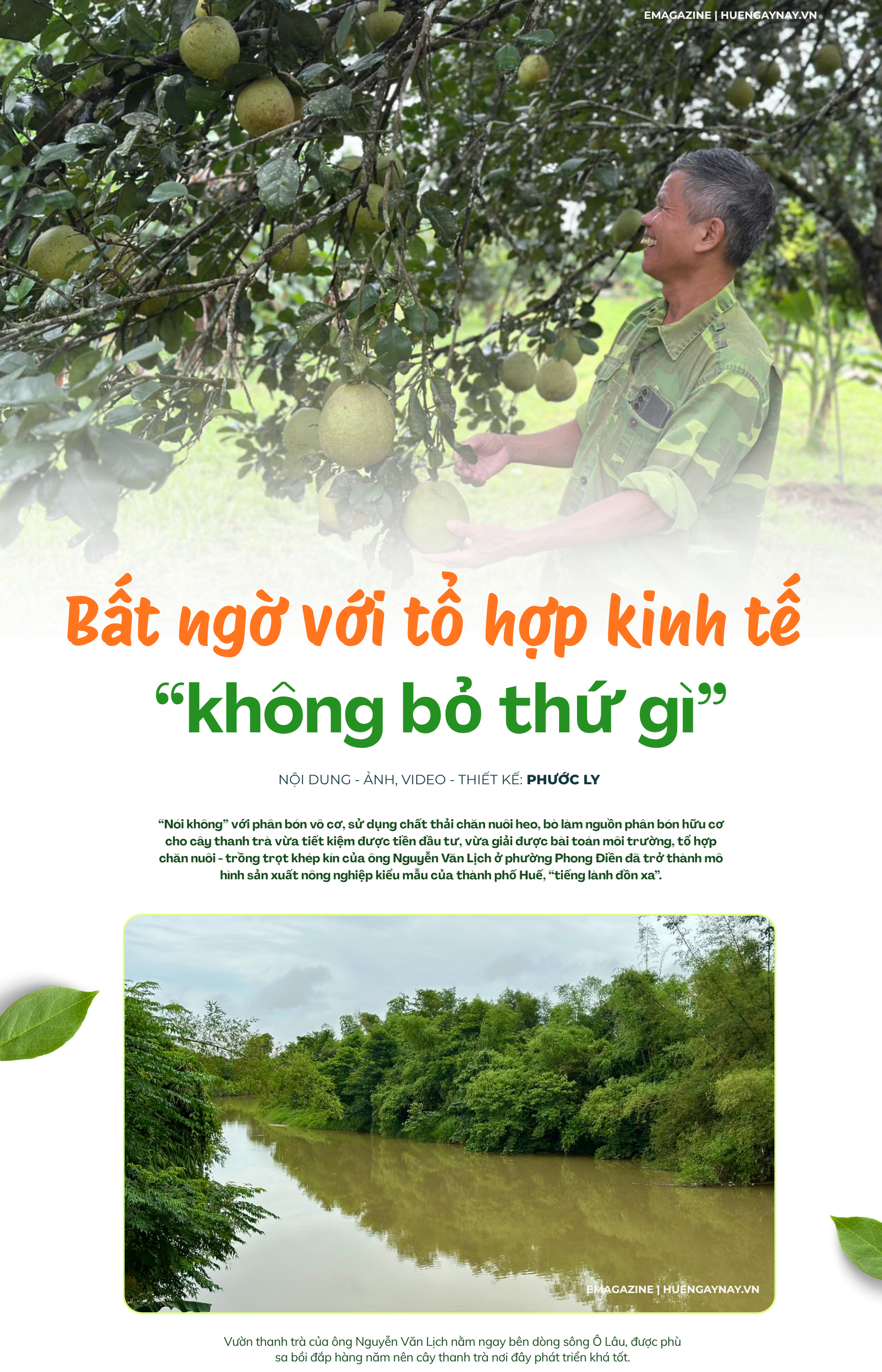 Cách nói mộc mạc và chân chất của ông Lịch giúp chúng tôi như chợt hiểu, mô hình kinh tế trồng trọt, chăn nuôi tuần hoàn khép kín đơn giản là… không bỏ thứ nào. Ví như với mô hình của ông Lịch, đó là bò ăn cỏ và ăn cả ăn trái cây thúi trong vườn. Bên cạnh nguồn thức ăn được Quế Lâm cung ứng với giá ổn định, thức ăn cho heo còn là nguồn hữu cơ tại chỗ như chuối trồng. Mặt khác, nhờ đưa công nghệ vi sinh vào đệm lót, chất thải chăn nuôi trở thành nguồn phân bón hữu cơ vừa tiết kiệm được tiền đầu tư, vừa giải được bài toán môi trường. Như một phát hiện mới khi thanh trà bón phân hữu cơ làm từ chất thải chăn nuôi heo cũng ít bị sâu bệnh hơn.