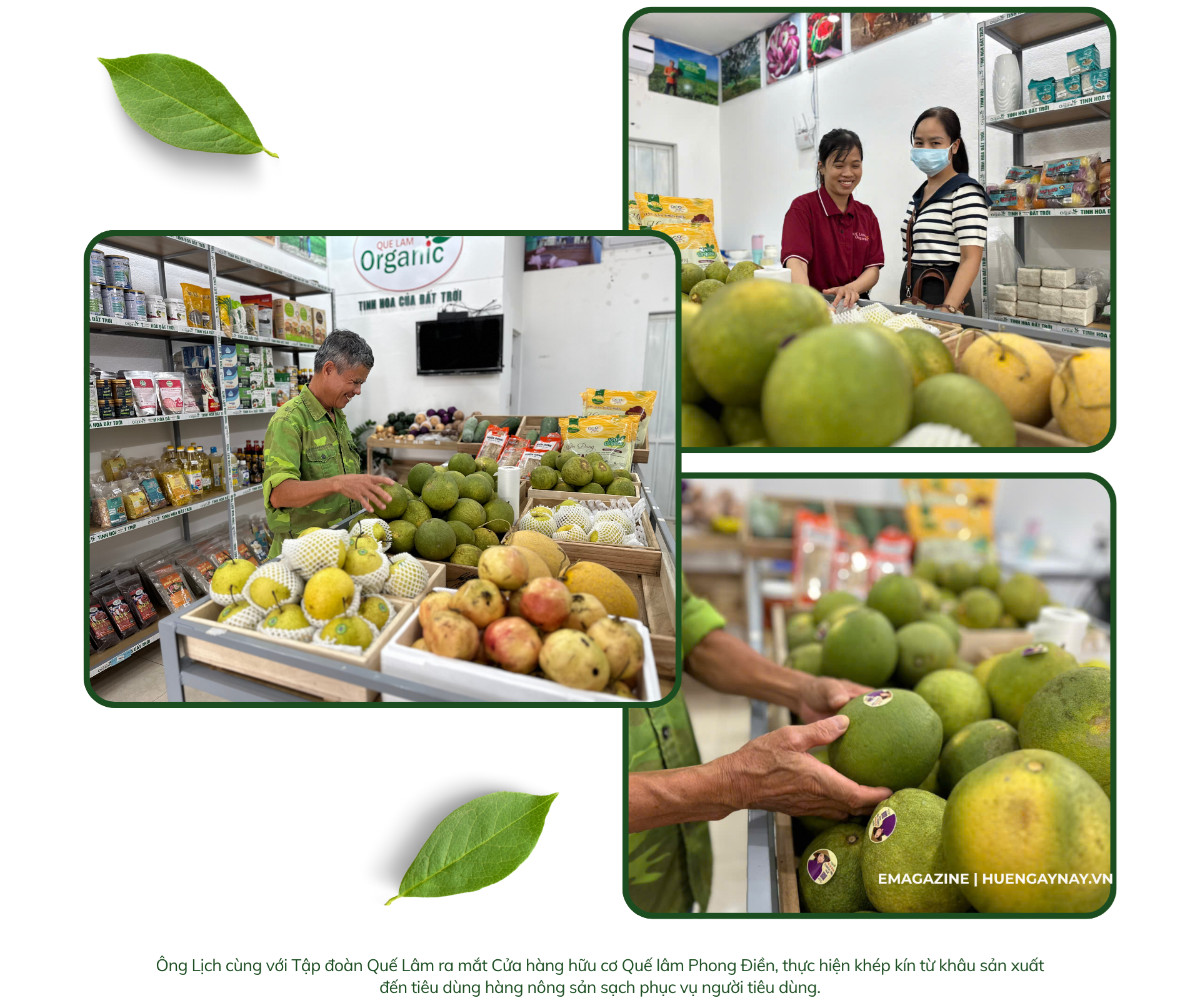 Ông Lịch cũng đã vận động thành lập Hợp tác xã thanh trà Phong Thu do ông làm giám đốc với diện tích 20 ha, tập hợp 15 nông dân cao tuổi ở thôn Trạch Hữu tham gia chuỗi giá trị nông nghiệp hữu cơ kinh tế tuần hoàn. Và không dừng lại, mới đây vào ngày 2/8/2025, ông Lịch cùng với Tập đoàn Quế Lâm ra mắt cửa hàng hữu cơ Quế lâm Phong Điền, thực hiện khép kín từ khâu sản xuất đến tiêu dùng hàng nông sản sạch phục vụ người tiêu dùng.