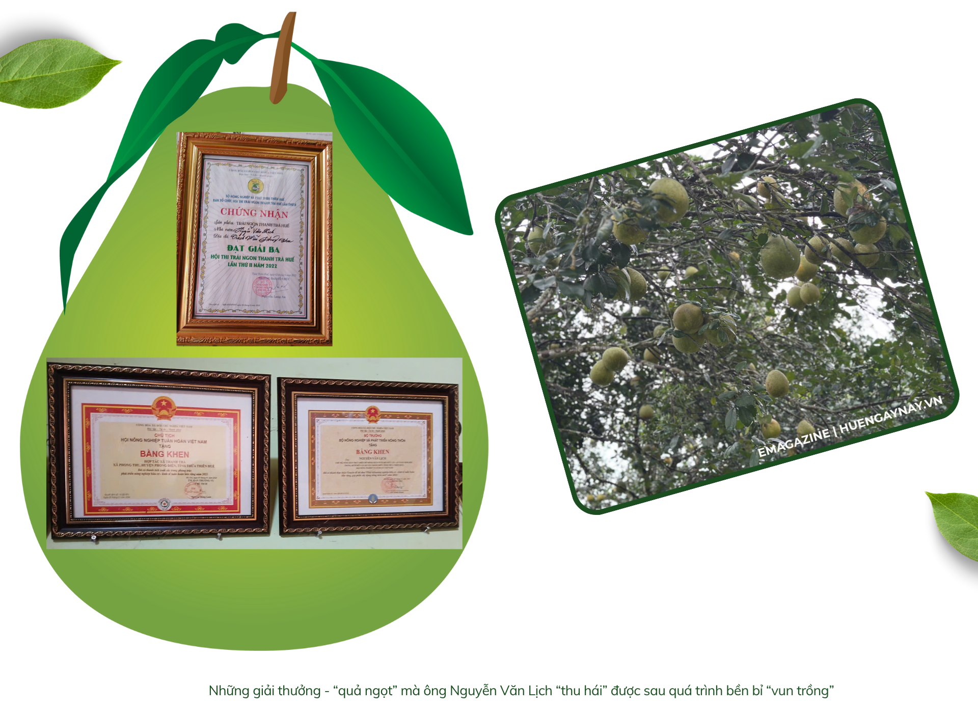 Điều khiến ông Lịch hào hứng và say sưa là những giá trị tạo ra từ mô hình kinh tế mới mà ông là người tiên phong đã được chứng thực. Bằng quy trình trồng trọt – chăn nuôi khép kín, hằng năm ông tạo được hơn 34 tấn phân bón hữu cơ vi sinh sạch bệnh tại chỗ để bón cho thanh trà và các loại cây trồng khác, mà không cần dùng tới phân bón vô cơ. Cũng nhờ áp dụng nguồn phân hữu cơ vi sinh từ chăn nuôi sẵn có và sử dụng các chế phẩm vi sinh của Tập đoàn Quế Lâm nên sản phẩm thanh trà bán ra cao hơn giá thị trường 20 %.