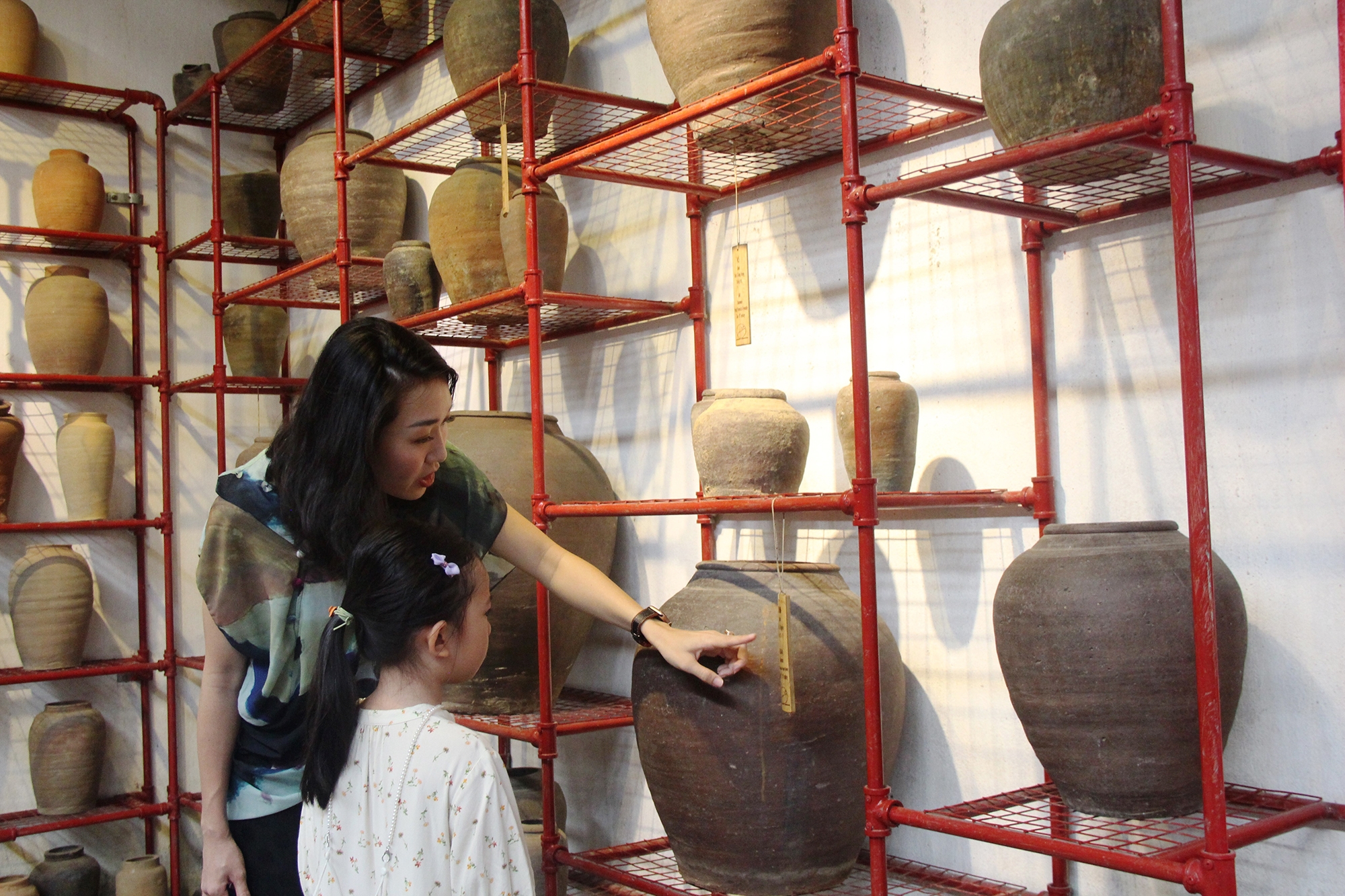 Một góc trưng bày các hiện vật ở Bảo tàng Gốm cổ sông Hương của GS.TS Thái Kim Lan