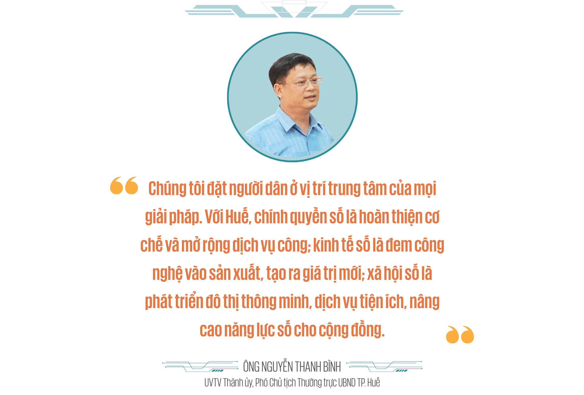 UVTV Thành ủy, Phó Chủ tịch Thường trực UBND TP. Huế Nguyễn Thanh Bình nói ngắn gọn: “Chúng tôi đặt người dân ở vị trí trung tâm của mọi giải pháp”. Với Huế, chính quyền số là hoàn thiện cơ chế và mở rộng dịch vụ công; kinh tế số là đem công nghệ vào sản xuất, tạo ra giá trị mới; xã hội số là phát triển đô thị thông minh, dịch vụ tiện ích, nâng cao năng lực số cho cộng đồng.