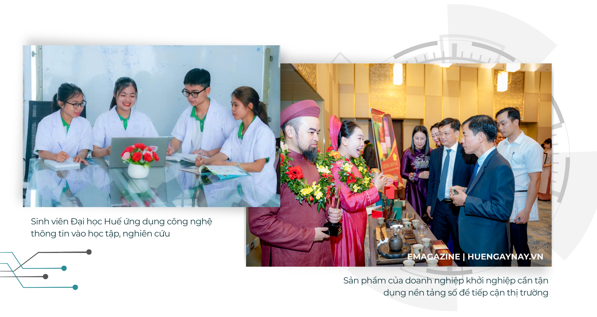 Về tiến trình thực hiện NQ 57, Đại học Huế đặt ra những mục tiêu cụ thể: Nâng cấp các phòng thí nghiệm đạt chuẩn quốc gia; tập trung nghiên cứu các đề tài có khả năng ứng dụng và thương mại hóa cao – ít nhất 65% đưa vào thực tiễn, 25% thương mại hóa; thành lập “Đội sinh viên tình nguyện số” để phổ biến kỹ năng số, hướng dẫn người dân sử dụng Hue-S và dịch vụ công trực tuyến; phối hợp DN tiếp nhận và ứng dụng kết quả nghiên cứu; thúc đẩy mạnh mẽ liên kết viện - trường - DN.