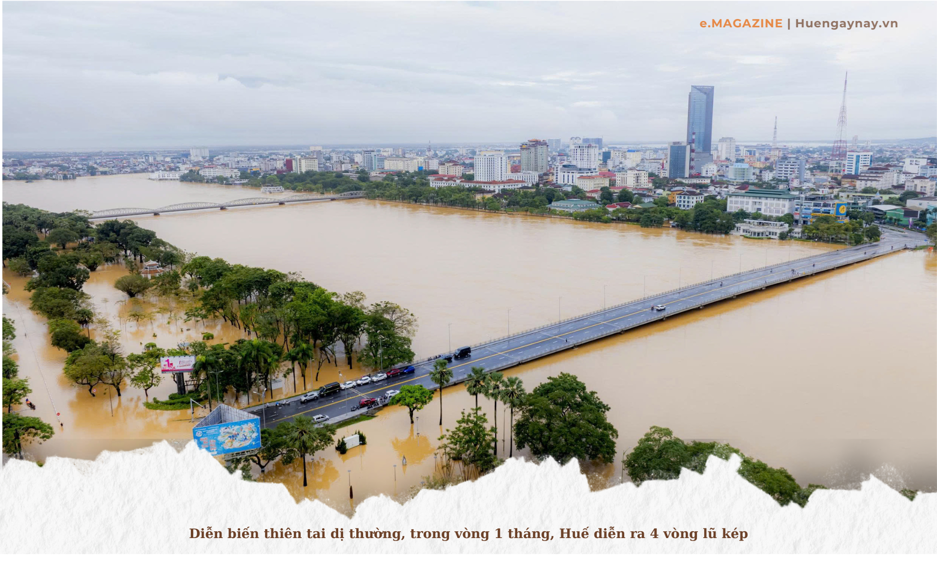 Trên sông Bồ, tại trạm Phú Ốc ghi nhận đỉnh lũ 5,31m. Đây là mức cao nhất trong lịch sử quan trắc, vượt cả đỉnh lũ năm 2020. Những đỉnh lũ lớn như vậy lặp lại tới 4 lần trong chưa đầy một tháng là điều chưa có tiền lệ. Một thử thách hà khắc tạo áp lực lên toàn bộ hệ thống phòng chống thiên tai. Giới chuyên môn nhận định, đây là “lũ hiếm” trong vòng 26 năm qua, kể từ cơn đại hồng thủy năm 1999.