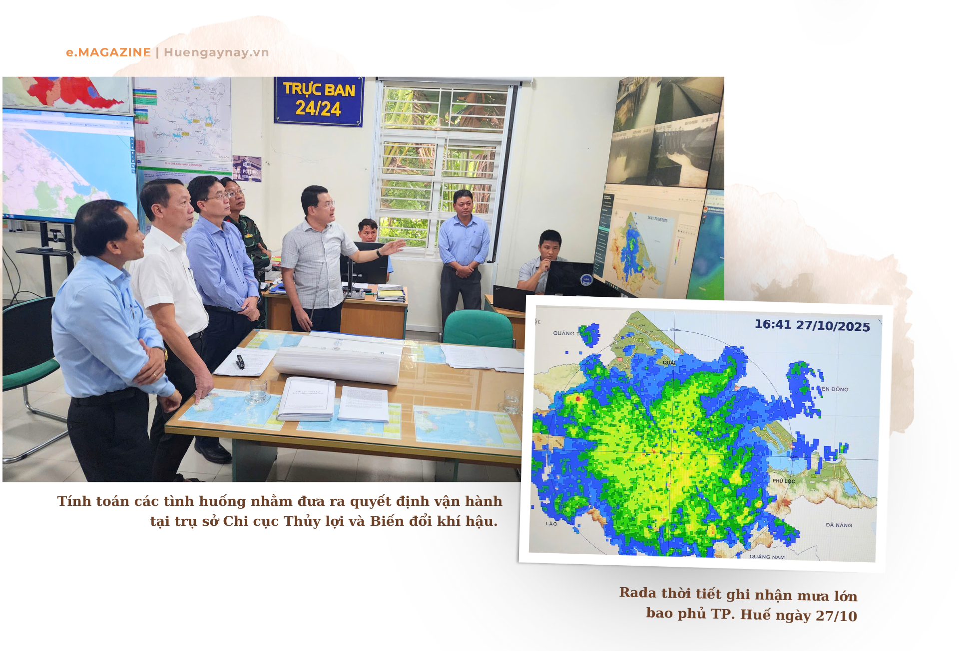 Sau một đêm thức trắng, lệnh vận hành khẩn cấp được ký trong buổi sáng 27/10, với yêu cầu vừa cắt lũ, vừa bảo đảm an toàn tuyệt đối cho công trình. Từ thời điểm ấy, trụ sở số 2 Trần Cao Vân gần như không còn ranh giới ngày và đêm. Đèn sáng suốt đêm, màn hình thủy văn đỏ rực, bản đồ mô phỏng liên tục cập nhật từng phút.