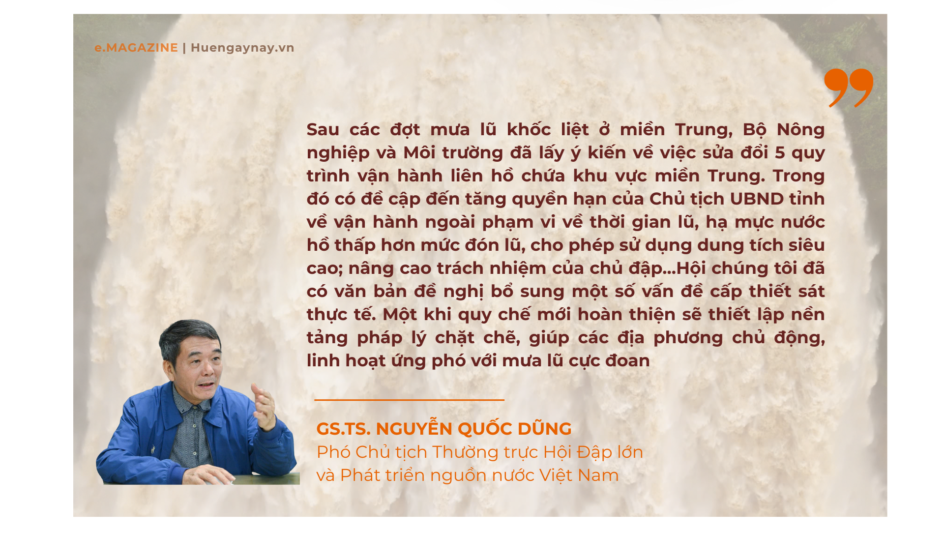 Dẫu vậy, đánh giá trên các thông số thực tế, GS.TS. Nguyễn Quốc Dũng, Phó Chủ tịch Thường trực Hội Đập lớn và Phát triển nguồn nước Việt Nam cho rằng, Huế còn có thể làm tốt hơn nữa trong công tác dự báo và điều tiết lũ. “Một số thời điểm, 3 hồ chứa chỉ vận hành đến mực nước dâng bình thường, chưa sử dụng dung tích siêu cao để cắt/giảm lũ. Riêng hồ Tả Trạch, dư địa còn nhiều cho việc giữ lũ để giảm ngập cho hạ du”, GS. Dũng chỉ rõ.