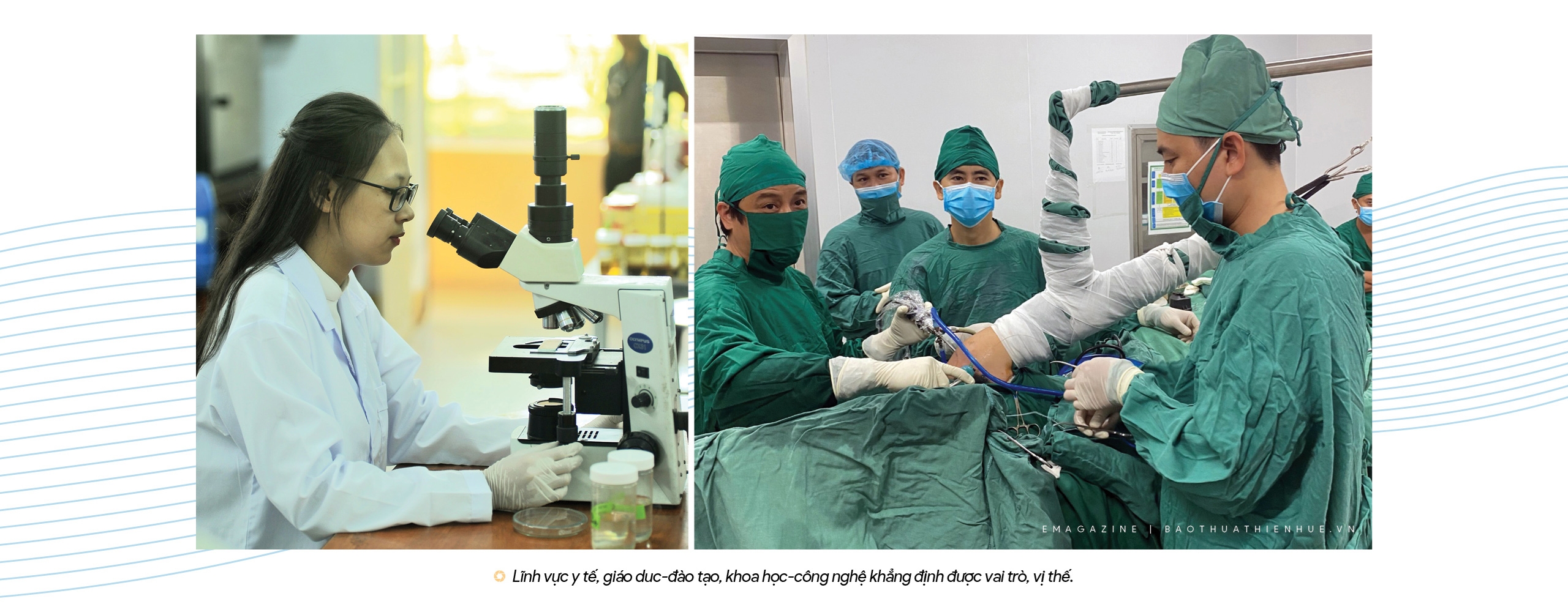 Các lĩnh vực y tế, giáo dục - đào tạo, khoa học - công nghệ đạt nhiều kết quả quan trọng. Chất lượng giáo dục toàn diện, mũi nhọn được nâng lên. Giáo dục mũi nhọn của Huế đạt được những thành tích nổi bật trên đấu trường quốc gia, quốc tế. Đại học Huế khẳng định vai trò và vị thế của một đại học trọng điểm, mang tầm vóc của một cơ sở giáo dục đại học quốc gia, góp phần đào tạo nguồn nhân lực chất lượng cao cho khu vực miền Trung và cả nước. Y tế phát triển mạnh mẽ với trụ cột, hạt nhân là Bệnh viện Trung ương Huế, Bệnh viện Trường đại học Y - Dược Huế và ngành y tế của tỉnh... đã đáp ứng nhu cầu chăm sóc, bảo vệ và nâng cao sức khỏe Nhân dân khu vực miền Trung và cả nước, đóng góp tích cực vào những thành tựu nổi bật trong lĩnh vực y học của nước nhà. Đã tập trung phát triển mạnh mẽ công nghệ thông tin, thực hiện chuyển đổi số với sự vào cuộc tích cực, đồng bộ của cả hệ thống chính trị và toàn dân.