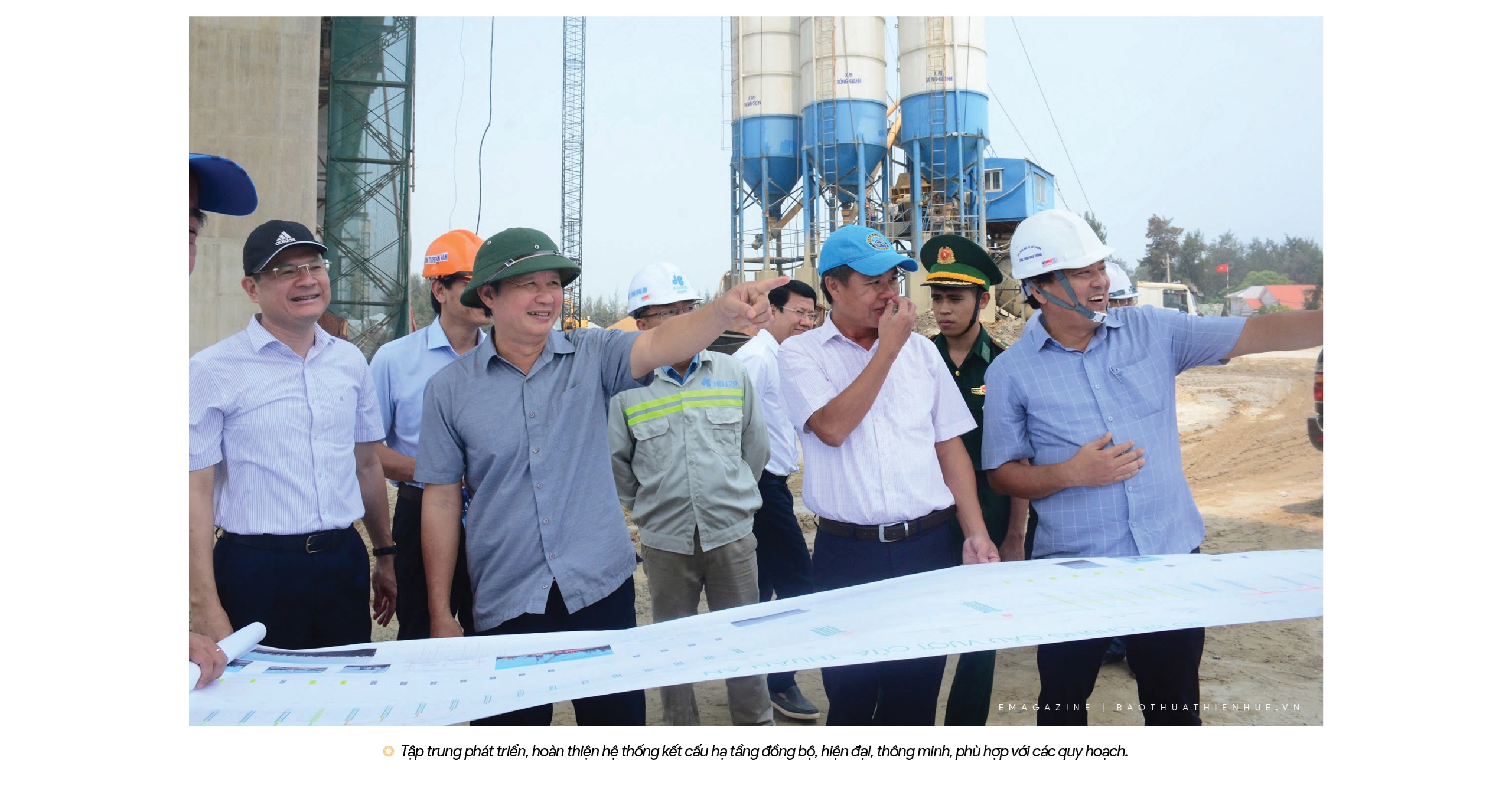 Tập trung phát triển, hoàn thiện hệ thống kết cấu hạ tầng đồng bộ, hiện đại, thông minh, phù hợp với các quy hoạch. Đầu tư hạ tầng Thành phố Huế đạt chuẩn đô thị loại I; tiếp tục đầu tư nâng chuẩn đô thị các quận: Phú Xuân, Thuận Hóa, các thị xã: Hương Thủy, Hương Trà, Phong Điền, đô thị Chân Mây.