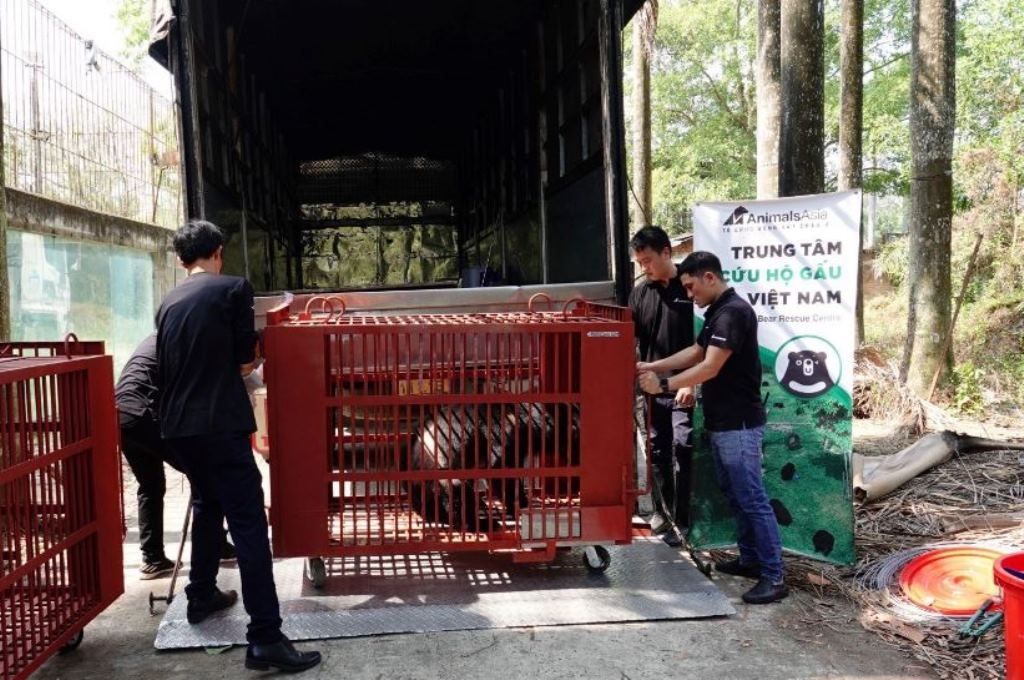Các cán bộ thuộc Trung tâm Cứu hộ Gấu Việt Nam trong một đợt cứu hộ gấu để đưa về trung tâm