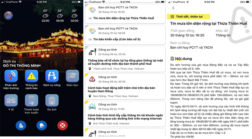 Ứng dụng HueS có nội dung cảnh báo thiên tai được cập nhật liên tục gửi đến người dùng
