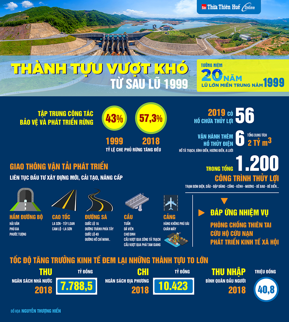Nhìn lại trận lũ năm 1999 và năng lực phòng chống thiên tai của tỉnh hiện nay, ông Nguyễn Văn Phương, Phó Chủ tịch UBND tỉnh cho rằng, khó có thể nói trước sự biến chuyển về thiên tai, bão lũ. Tuy nhiên, có thể nhìn nhận một cách lạc quan, khả năng xảy ra lũ lớn, ngập sâu như trận lũ cách đây 20 năm khó tái diễn.