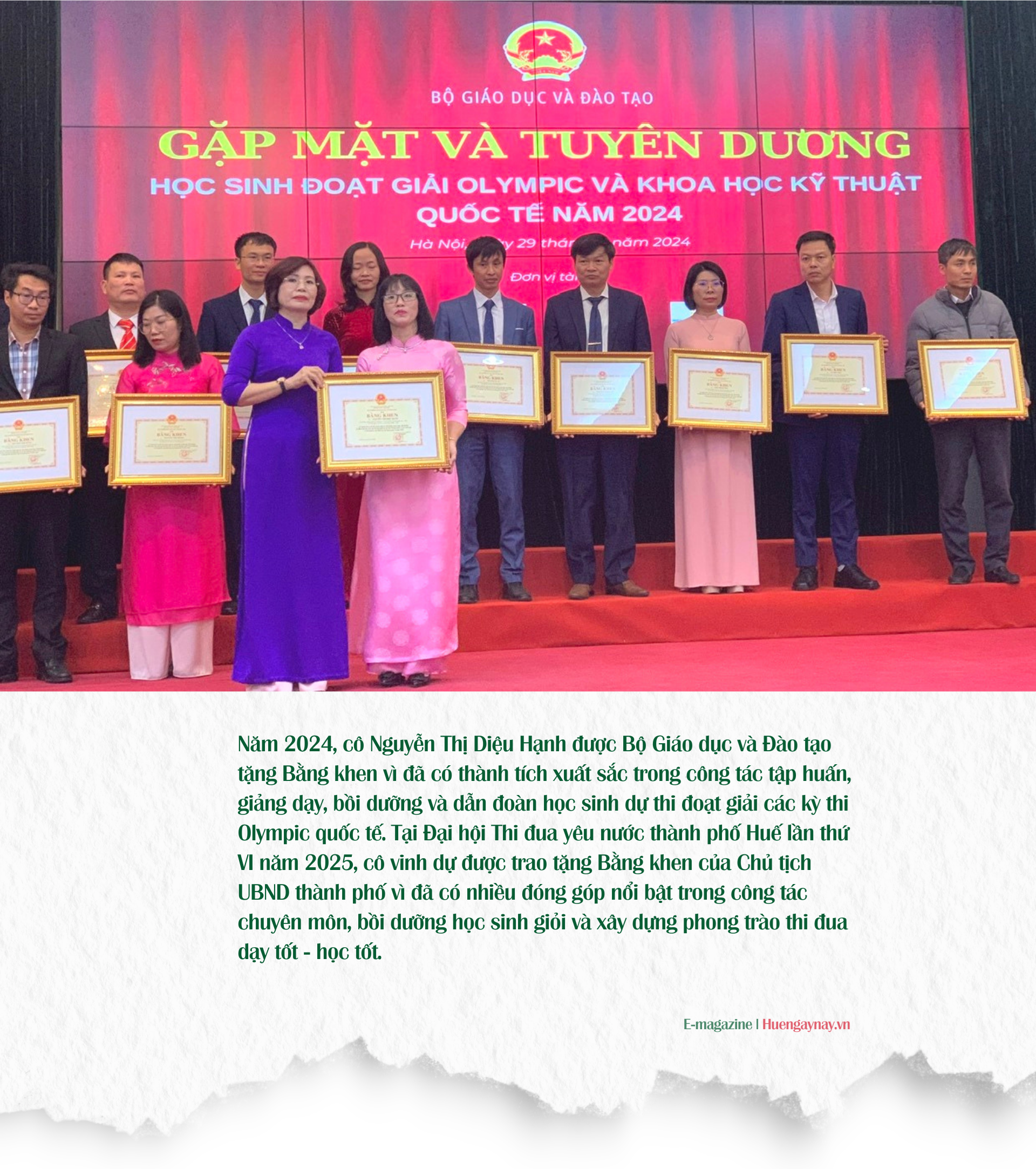 Tháng 7/2025, cô giáo Nguyễn Thị Diệu Hạnh đồng hành cùng học trò Bùi Hoàng Đại Dương sang Philippines tham dự Kỳ thi Olympic Sinh học quốc tế 2025. Trước thời khắc công bố giải, cô Hạnh nôn nao, hồi hộp không kém học trò. Từ Philippines, cô nhắn về: Dương đã cầm chắc Huy chương Bạc (HCB) và rất hy vọng màu huy chương sẽ là Vàng, bởi tổng 2 bài thi lý thuyết và 4 bài thi thực hành của Dương đều đạt trên 80%. Cuối cùng, Dương nhận HCB - một kết quả xuất sắc dù tiếc nuối vì chưa chạm tới HCV.