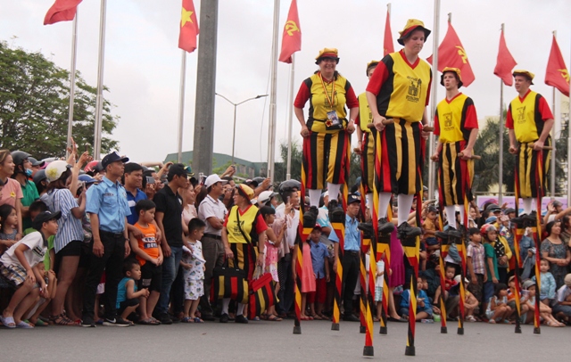 Đoàn cà kheo đến từ Bỉ - một trong những đoàn nghệ thuật quen thuộc với người dân Huế trong các kỳ Festival luôn được người dân Huế đón nhận một cách hào hứng, thích thú